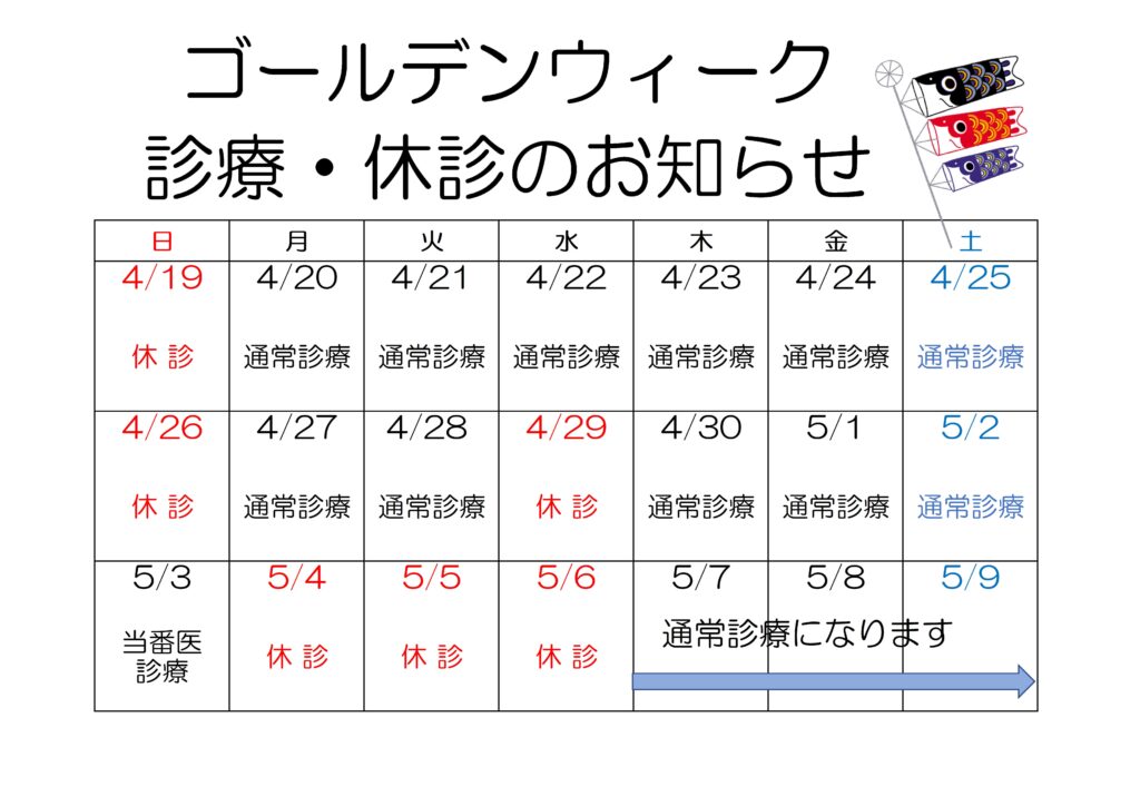 ゴールデンウィーク診療・休診のお知らせ